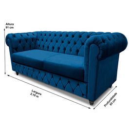 Sofá Chesterfield Plus 2,10m com Capitonê Velupluma Azul