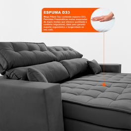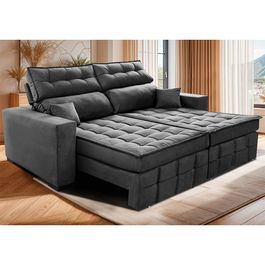 Sofá Retrátil e Reclinável 2,75m Molas Ensacadas Sofá inBox Grand Space com Bordado 3D Velupluma Preto